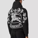 An oversized bomber jacket in cotton, printed with the Equestrian Knight Device and oak leaf crest - a modern take on our archive emblem. The design is styled with rib-knit trims and functional pockets.