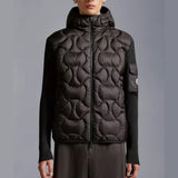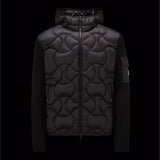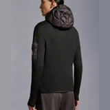 A ribbed knit, this padded cardigan doubles as outerwear during the milder months. The hooded style boasts a down-filled front, characterised by overlapping onion quilting. An iconic patch pocket on the sleeve adds the finishing touch.