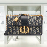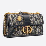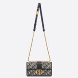 The East-West bag with chain enhances the 30 Montaigne line with a timeless and elegant design. The handbag is crafted in blue jacquard and highlights the House's hallmark Dior Oblique motif. The flap has an antique gold-finish metal CD clasp, inspired by the seal of a Christian Dior perfume bottle. Other details, like the embossed 30 Montaigne signature on the back, highlight the streamlined design. The bag features a removable chain strap with a leather insert that allows it to be comfortably carried by hand, worn over the shoulder or crossbody. Flap closure CD clasp Embossed 30 Montaigne signature on the back Removable and adjustable chain shoulder strap with leather insert Interior patch pocket Back pocket Dust bag included Made in Italy