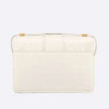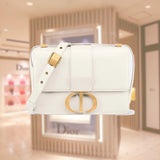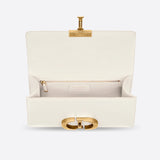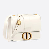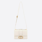 The 30 Montaigne line is inspired by the emblematic address and offers essential pieces that embody the House's iconic codes. The handbag is crafted in box calfskin for an elegant and modern look. The flap is embellished with an antique gold-finish metal CD clasp, inspired by the seal of a Christian Dior perfume bottle. Refined details, such as an embossed 30 MONTAIGNE signature on the back, define this unique design. Featuring an adjustable leather shoulder strap, the bag may be carried by hand, worn over the shoulder or crossbody.