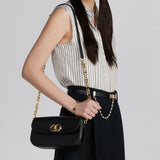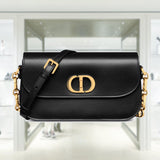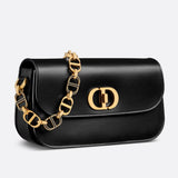 The 30 Montaigne Avenue bag enhances the hallmark line with a timeless and elegant style. Crafted in box calfskin, the rounded flap with delicate curves is punctuated by an antique gold-finish metal CD clasp inspired by the seal of a Christian Dior perfume bottle. The design is completed by other details, like the 30 Montaigne signature embossed on the back and the signature chain alternating gold-finish metal and tonal enamel links that match the leather. The gusseted bag features a spacious and refined silhouette that can be carried by hand, worn over the shoulder or crossbody.