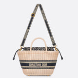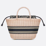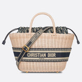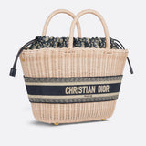 The Chapeau basket bag stands out for its feminine silhouette that combines functionality and elegance. A prime example of the Maison's savoir-faire, the design is hand-woven using artisanal techniques from natural-coloured wickerwork. Handles, also made of wicker, and an inside pouch with blue Dior Oblique jacquard and drawstring complete the style. At the front, a Christian Dior Paris lettering attracts attention. With the help of the adjustable and removable shoulder strap with embroidery, the spacious bag can be carried by hand, as a shoulder bag or even as a shoulder bag.