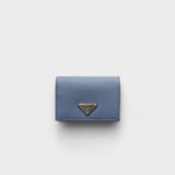 Crafted from Saffiano leather and finished with the iconic enameled metal triangle logo, this wallet exudes sleek, understated elegance.
