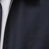 Tailored from refined navy blue virgin wool blend, this piece features subtle Dior embroidery and sharp spread collar.