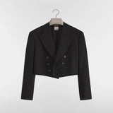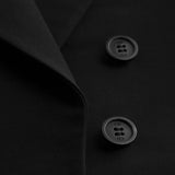 Tailored from black virgin wool, it is finished with sharp, elegant peak lapels.