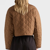This quilted jacket blends timeless aesthetic with modern, cropped silhouette.