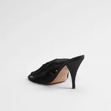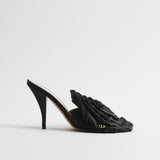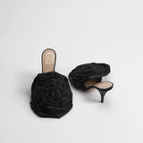 Defined by striking oversized black satin flower, this silhouette is designed to add bold, sophisticated finish to any ensemble.