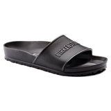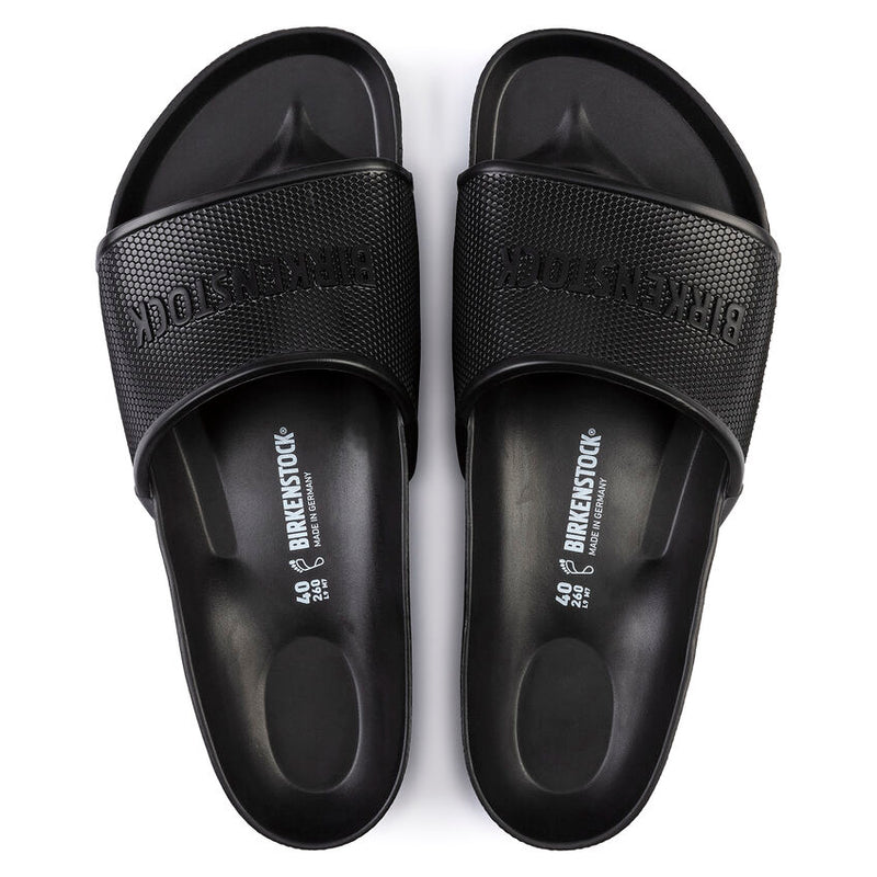 The BIRKENSTOCK Barbados is a sporty mule with a hexagon pattern and logo lettering. It's perfect for anyone who is looking in particular for function and comfort. Modeled on the cork sandal, this sandal is made from especially light and flexible EVA. This high-quality, odor-neutral synthetic material which has been tested for harmful substances is shock-absorbent, waterproof, and skin-friendly. It's therefore perfect for wearing at the beach, in the garden, or in wellness and spa areas. Anatomically shaped BIRKENSTOCK footbed made from EVA Upper/footbed lining/sole: a single piece of EVA Details: waterproof, washable, ultra lightweight Made in Germany