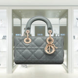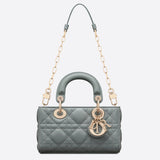 New this season, the Lady D-Joy micro bag captures the House's vision of elegance and beauty by showcasing the iconic streamlined aesthetic of the Lady Dior line. Sleek and refined, the timeless creation is crafted in lambskin with Cannage stitching and enhanced by a pale gold-finish metal D.I.O.R. charm. Featuring one removable chain strap and another adjustable and removable leather strap, the Lady D-Joy micro bag can be carried by hand, worn over the shoulder or crossbody as an ideal day or evening companion.