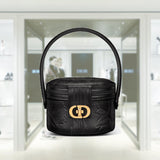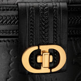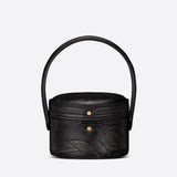 This season's new Minaudiere bag impresses with elegant, rounded contours. The black Sbalzo calfskin features the romantic Dior Jardin Botanique floral motif in the style of the Granville gardens that Monsieur Dior loved so much. This minaudiere with black leather handle completes all the looks of the season.