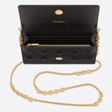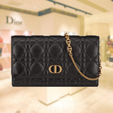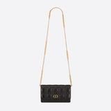 The Dior Caro chain pouch is a practical and elegant creation. Crafted in supple calfskin with Cannage stitching, it features an antique gold-finish metal CD signature flap that reveals a compartment to hold all the essentials. The removable 'CD'-link chain allows it to be worn over the shoulder, crossbody or carried by hand, thus making it an ideal daily companion.CD signature on the frontFlap closure1 zipped pocket6 card slots1 spacious interior compartment1 rear curved patch pocketRemovable chain strapMade in ItalyCalfskin Product code:S5134UWHC_M900