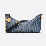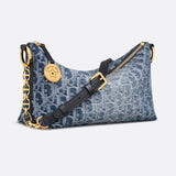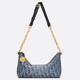 The practical Diorstar Hobo bag with chain impresses with its modern look. Crafted in blue denim Dior Oblique jacquard with a generous compartment, the soft style features a modern take on the Maison's famous motif with an irregular stonewashed effect. The zipper features a medallion engraved with the Christian Dior Paris lettering and the Maison's signature star. Discreet CD rivets on the sides round off the style. Featuring an adjustable shoulder strap made of CD chain links with leather inserts, the bag can be carried comfortably over the shoulder with internal card slots.