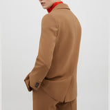 Passepartout blazer in bi-stretch fabric with diagonal structure. One button with peak lapels, melton undercollar and contrasting piping inside. To be worn in a twin set with the matching pants.Fabric: 53% polyester, 43% virgin wool, 4% elastane; Lining: 62% acetate, 38% polyester; Sleeve lining: 65% acetate, 35% polyester Product code:7044092003001