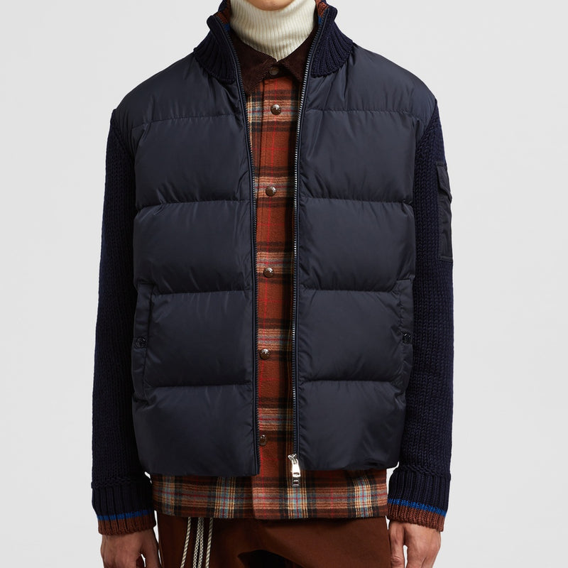 This zip-up cardigan is part of our adaptable wardrobe collection, featuring water-repellent nylon front filled with down for added warmth.