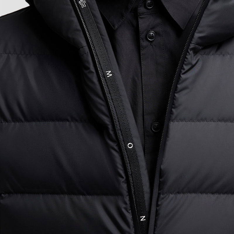 Filled with down and crafted from stretch wool, it offers exceptional comfort, while the hood provides shelter from the elements.