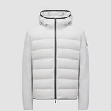 Filled with down and crafted from stretch wool, it offers exceptional comfort, while the hood provides protection from the weather.