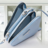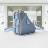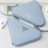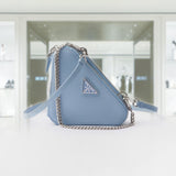 Made from the brand's hallmark Saffiano fabric, this mini pouch's silhouette is based off a reinterpretation of the emblematic Prada triangle logo. The style is completed by an iconic, enameled-metal triangle logo, which appeared for the first time on trunks designed by Mario Prada in 1913.