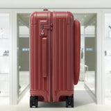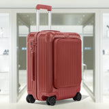 Ideal for trips lasting 4 to 5 days, the RIMOWA Essential Sleeve Cabin Plus in glossy Rosewood pink boasts several clever features: