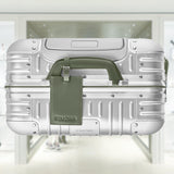 The olive green accents and matching leather handles on this suitcase beautifully complement RIMOWA’s iconic Original design, adding touch of luxury to your travels.