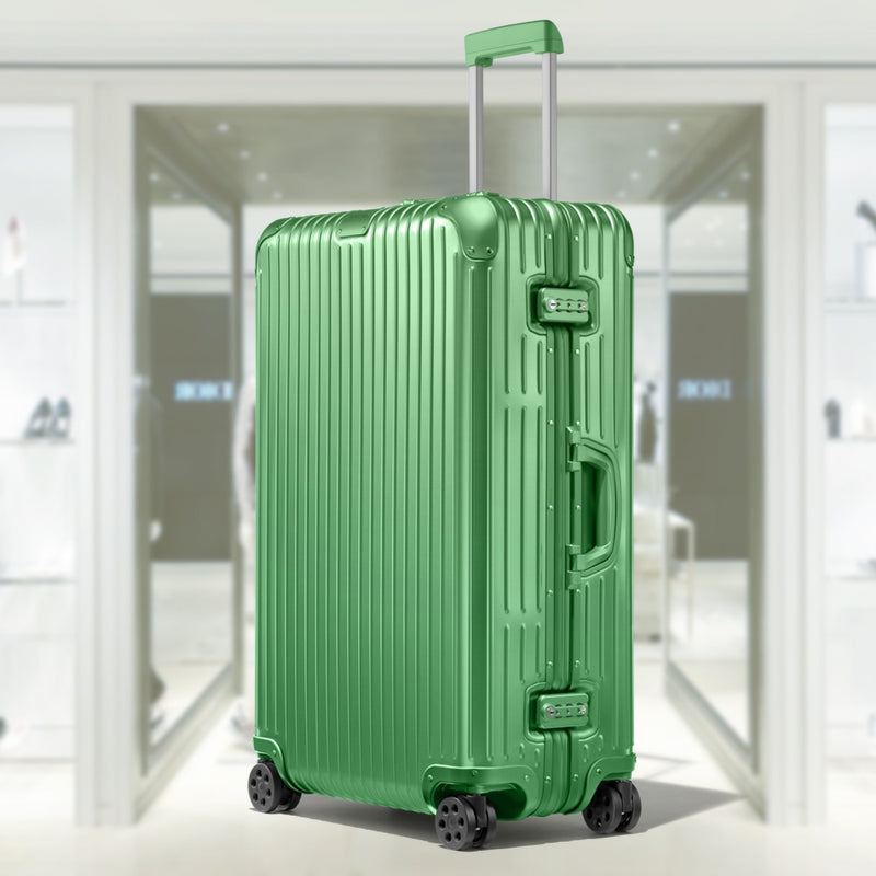 The RIMOWA Original Check-In L in Emerald Green is ideal for trips lasting 14 to 15 days and boasts several smart features: